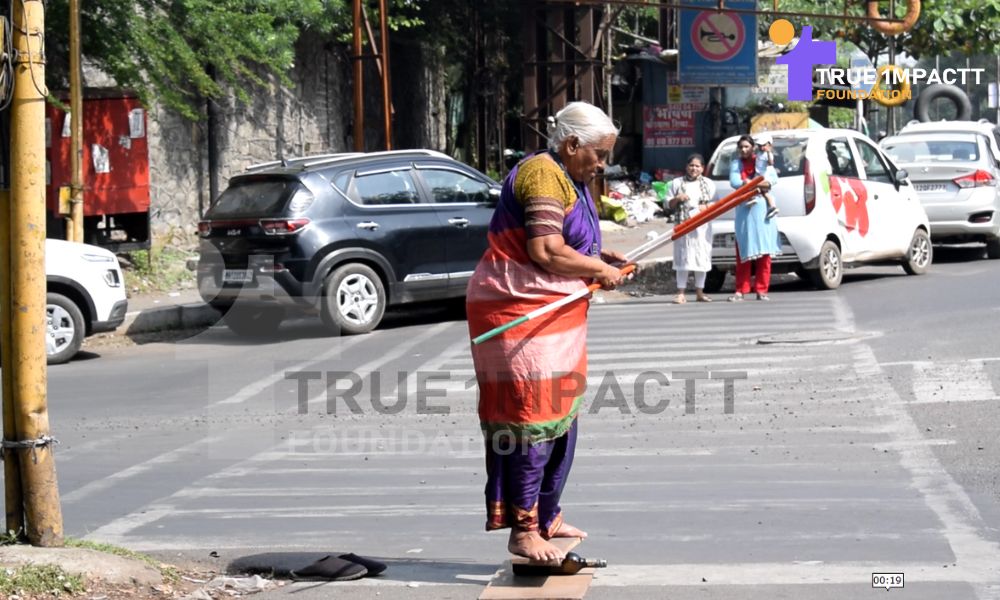 Every morning, long before the sun rises over Pune, an 89-year-old woman cooks food, ties her saree tightly, picks up two sticks, and steps out of her house in a slum. Her name is Shanta Pawar, lovingly called as Ajji by the children around her.